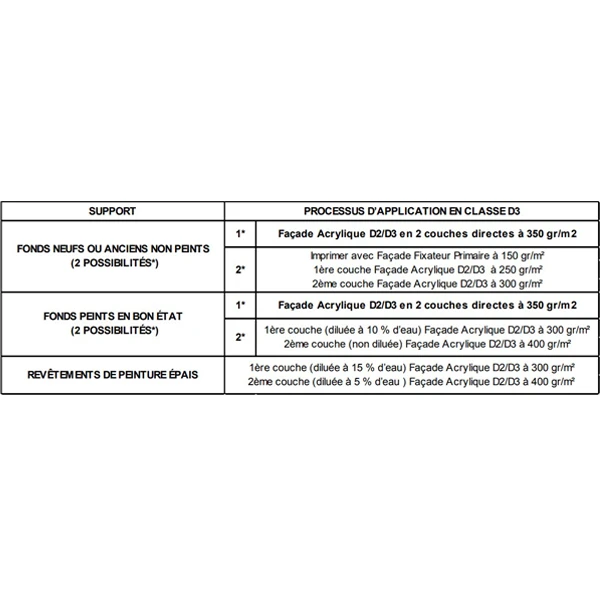 | Rendement | 500 à 700 grammes / m² selon la classe ou +/- 4 m²/ litre |