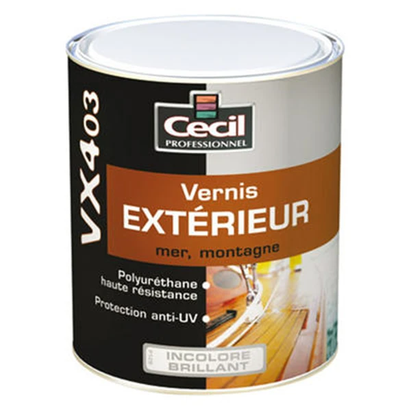 | Conditionnement | 1 pot de 2,5 litres de vernis bois extérieur VX403 |